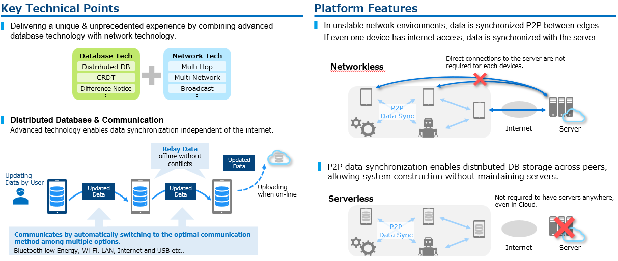 Networkless: Even offline, devices can communicate peer-to-peer via Bluetooth or Wi-Fi to synchronize data.